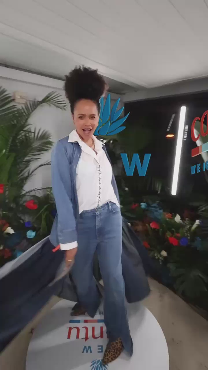 Turn heads with the AMAR upcycled denim trench shirt. This unique piece is crafted from repurposed denim and features a stylish button-down design with a flattering flowy fit. Not only will you make a fashion statement, but you'll also be helping the environment by choosing sustainable fashion.