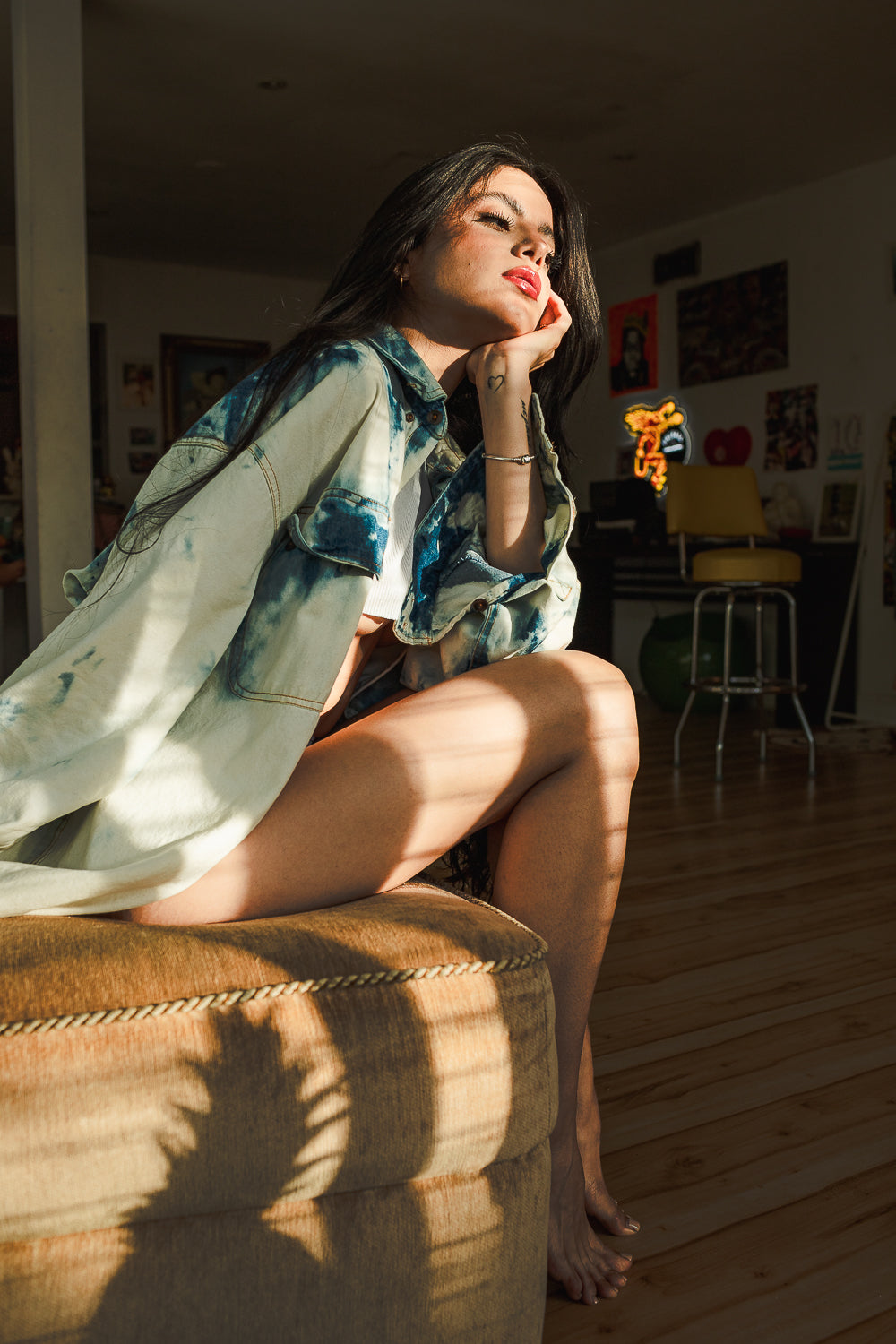 )This oversized denim bottom down shirt is the perfect blend of comfort and style. With a relaxed fit, it's like having your boyfriend's shirt, but even better because it's made for you. Made for any occasion, dress it up or dress it down, the options are endless.
