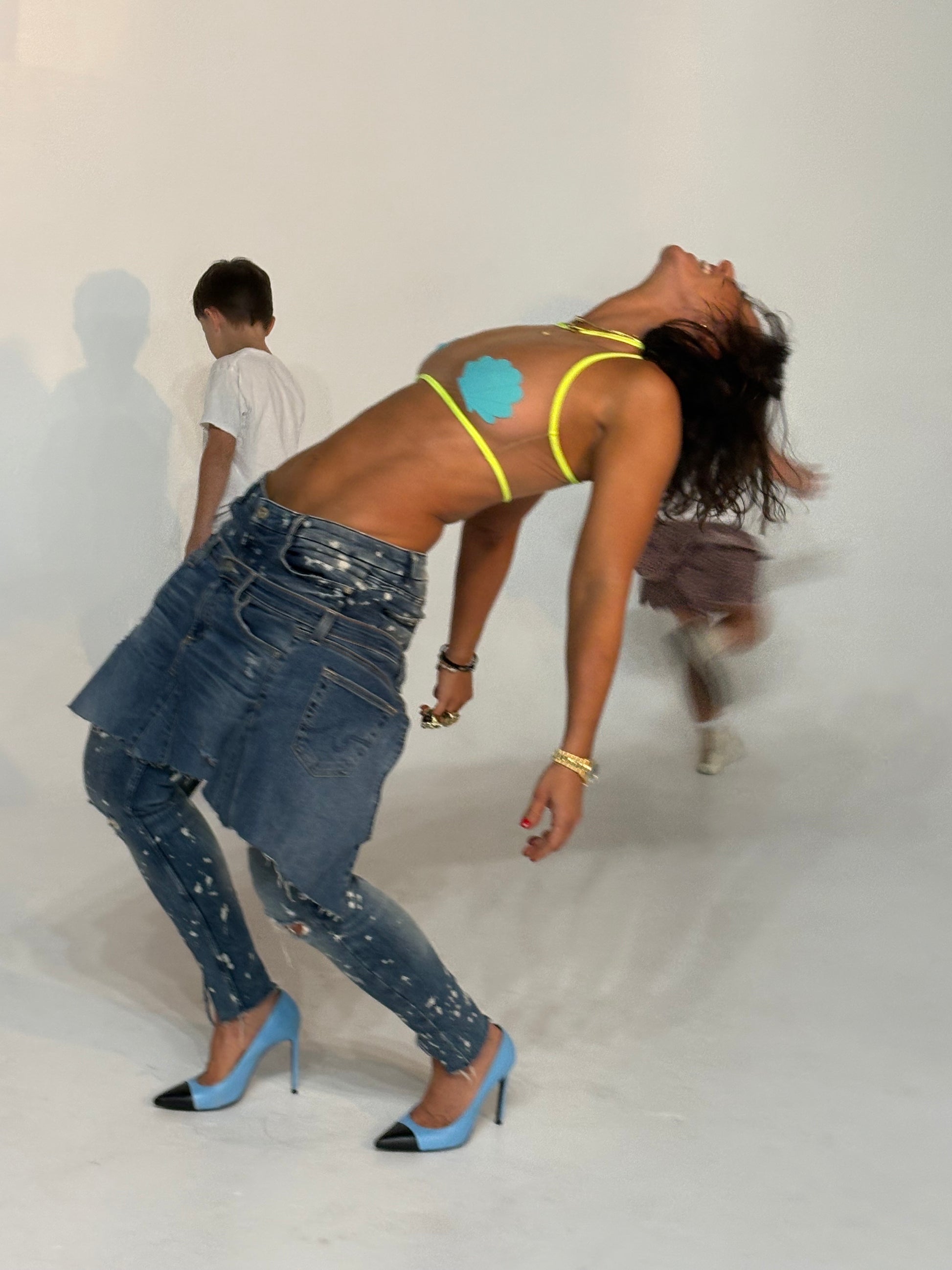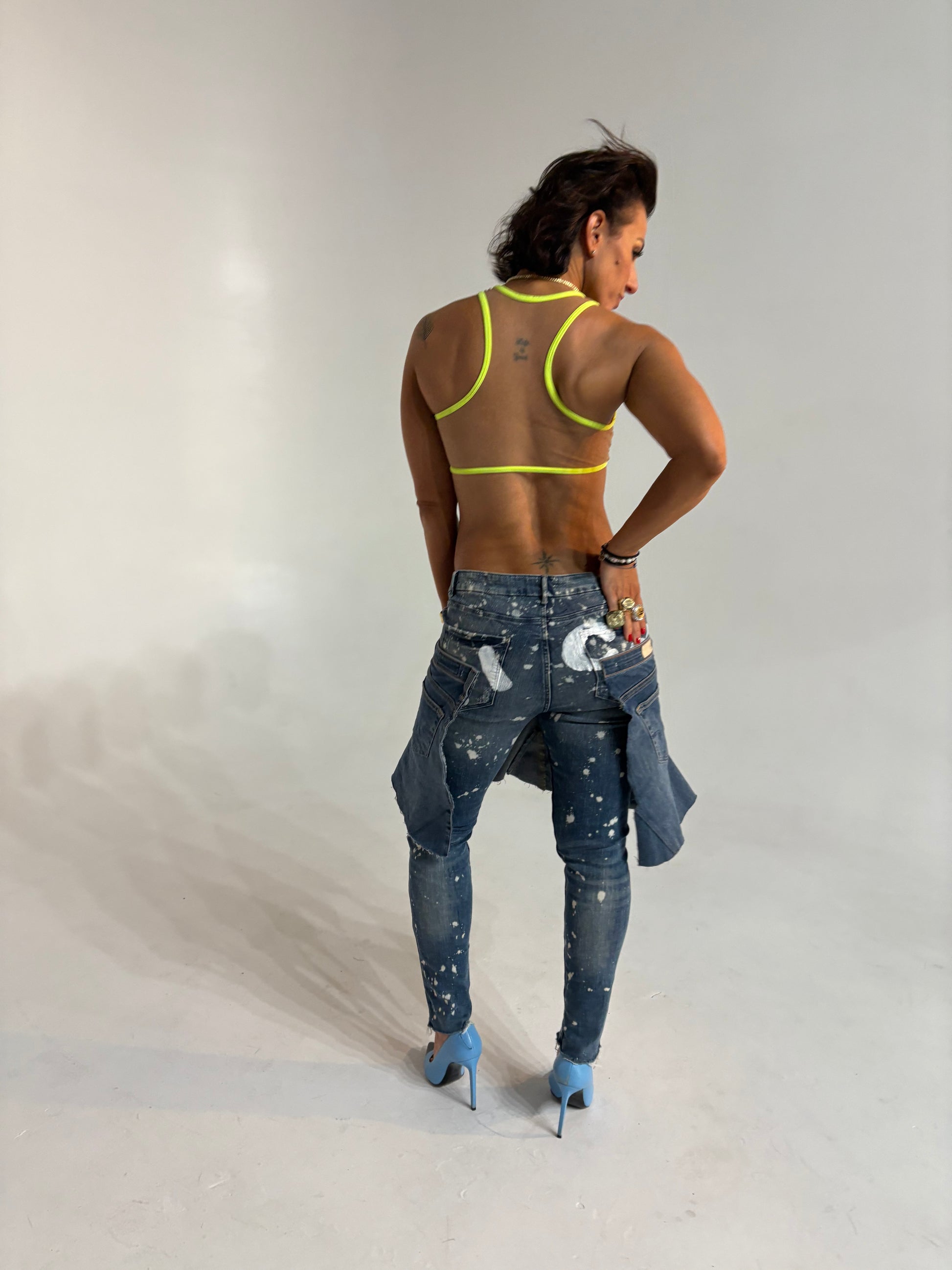 Transform your denim game with PIEL. Our repurposed pants not only elevate your fashion sense, but also help support the sustainable fashion revolution. So go ahead, dance your heart out in style knowing you're making a positive impact.